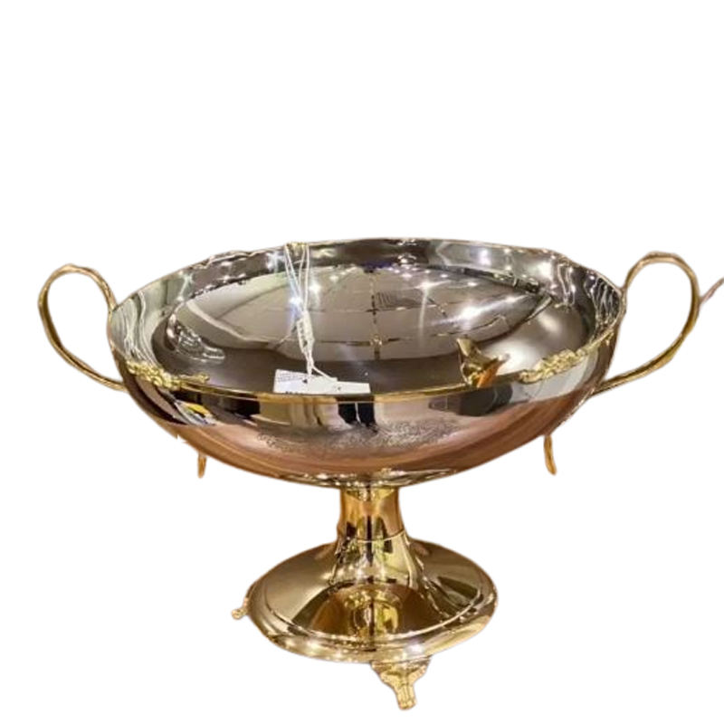 Cuenco de diseño de forma redonda con asas laterales, vajilla de Metal de acero inoxidable de aluminio, cuenco de cerámica para servir comida japonesa