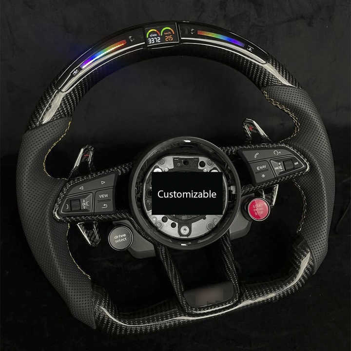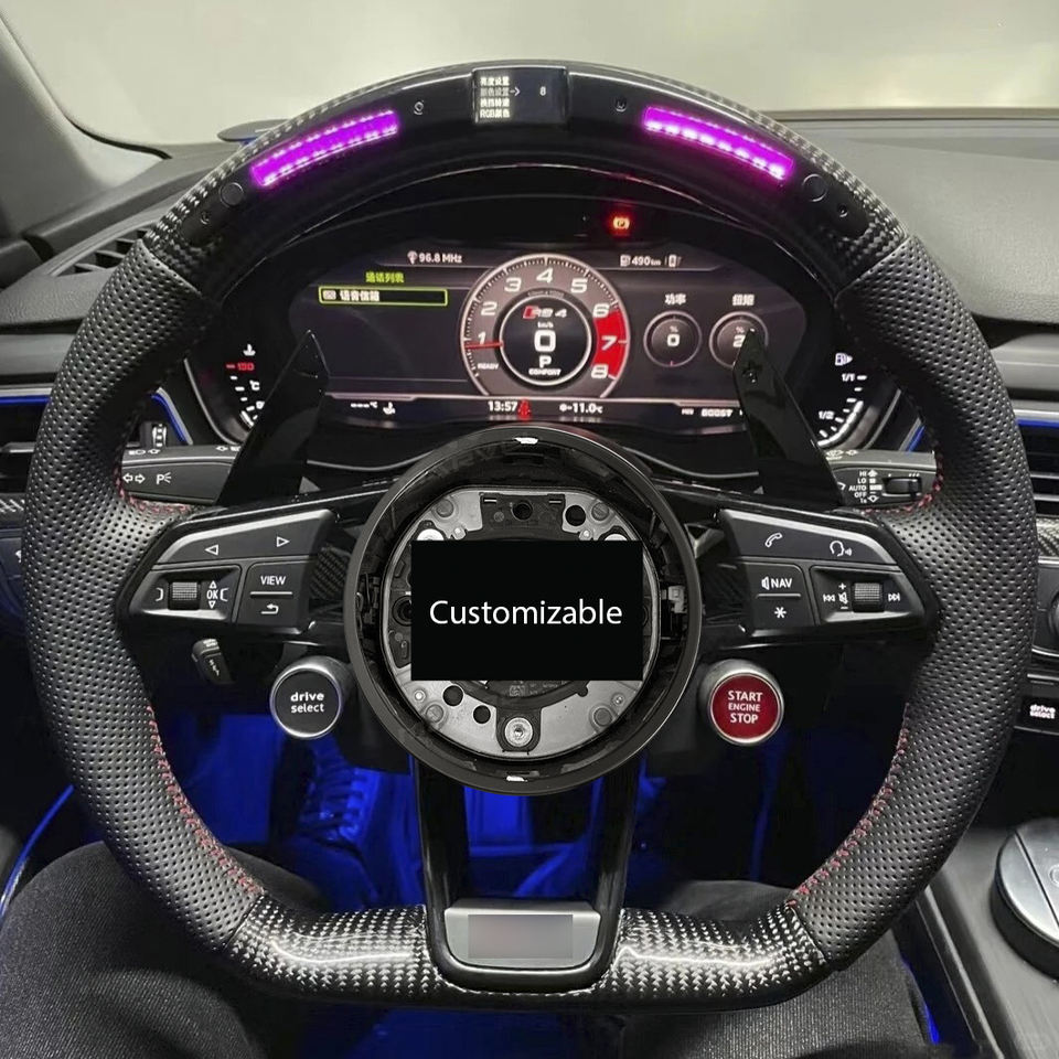 Volante de Carbono con Luz LED y Botón de Arranque S-Line para Audi Q8 SQ8 A3 A4 B9 A5 B8 A6 C7 A7 S3 S4 RS3 RS5 RS7 RS6 C8