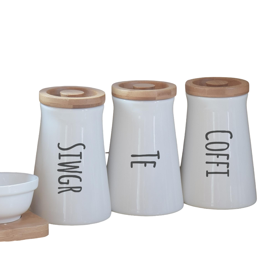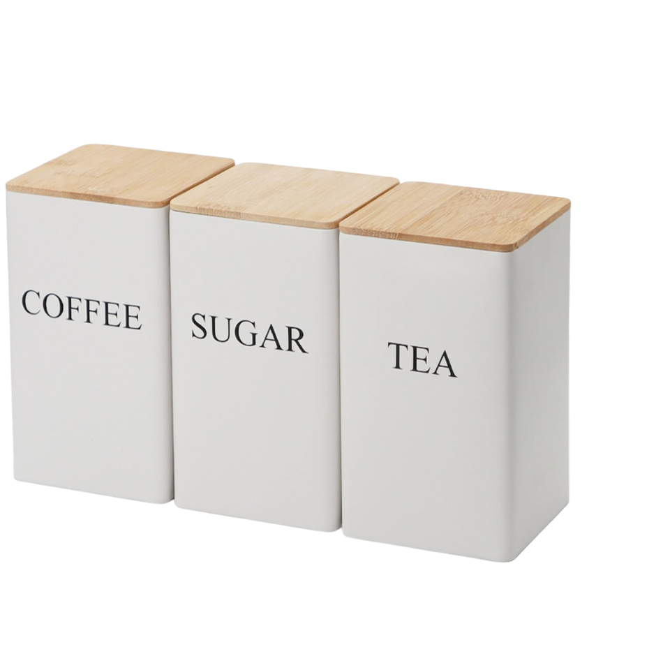Juego de botes de cocina con capa de polvo de Color blanco, almacenamiento de alimentos de Metal ecológico, tapa de bambú, caja Beige, uso multiusos