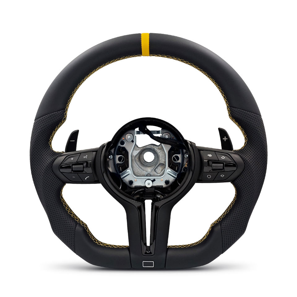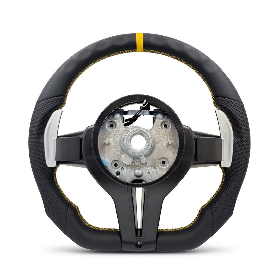 Volante Deportivo M con Parte Superior Amarilla y Base Plana para BMW Serie 3 E90 E91 E92 E93 X5 E70 E71 X6 E72 E84 E89 E88