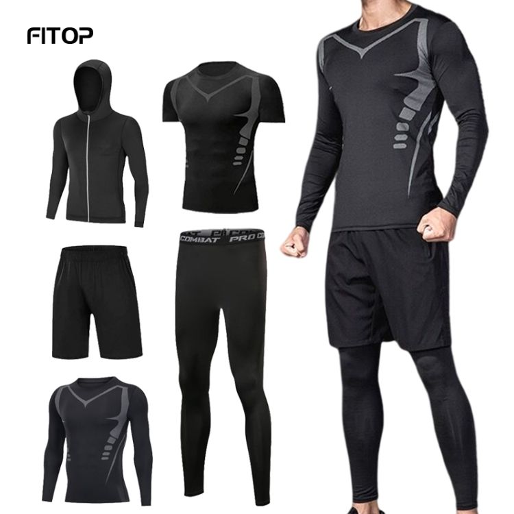 Con logo 5 uds mallas de manga larga Fitness Yoga conjunto de ropa deportiva de alta resistencia gimnasio entrenamiento Yoga Mono para hombres