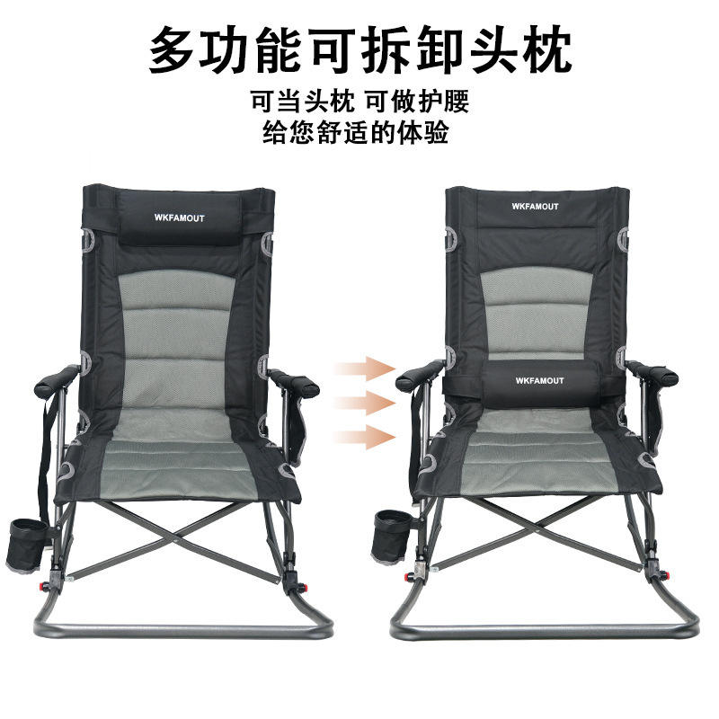 Silla mecedora Wkfamout extra grande, plegable, reclinable, portátil, para jardín, en azul gris y negro gris