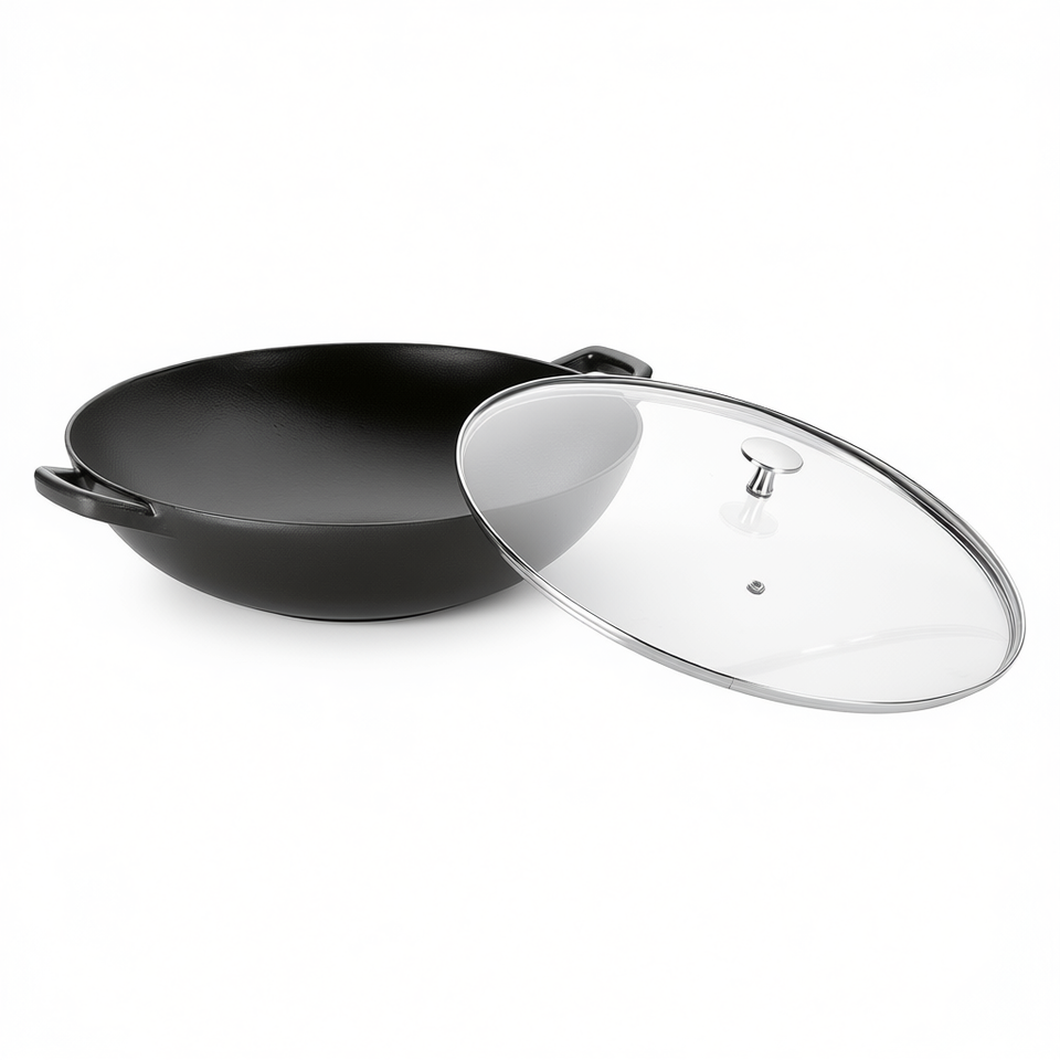 Wok con tapa de vidrio de 30 cm para cocinar a la wok