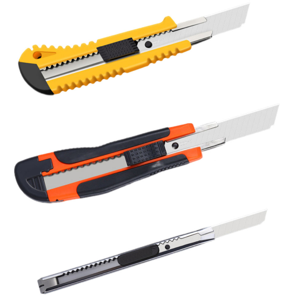 Cuchillo Multiusos de Acero Inoxidable Amarillo Wokwell SK-5, Cuchillas Retráctiles con Función de Corte, Mango de Goma con Agarre, Logotipo Personalizado