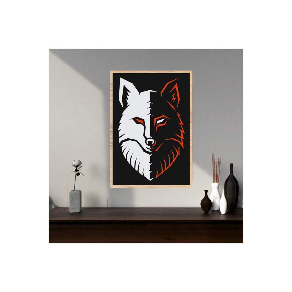 Lobo Animal Tamaño grande Colorido Descolorido Calidad Impresión 70x50cm MDF Marco de mesa Arte de pared Producto