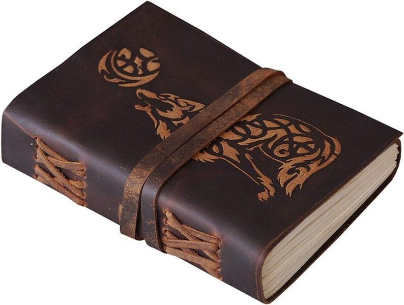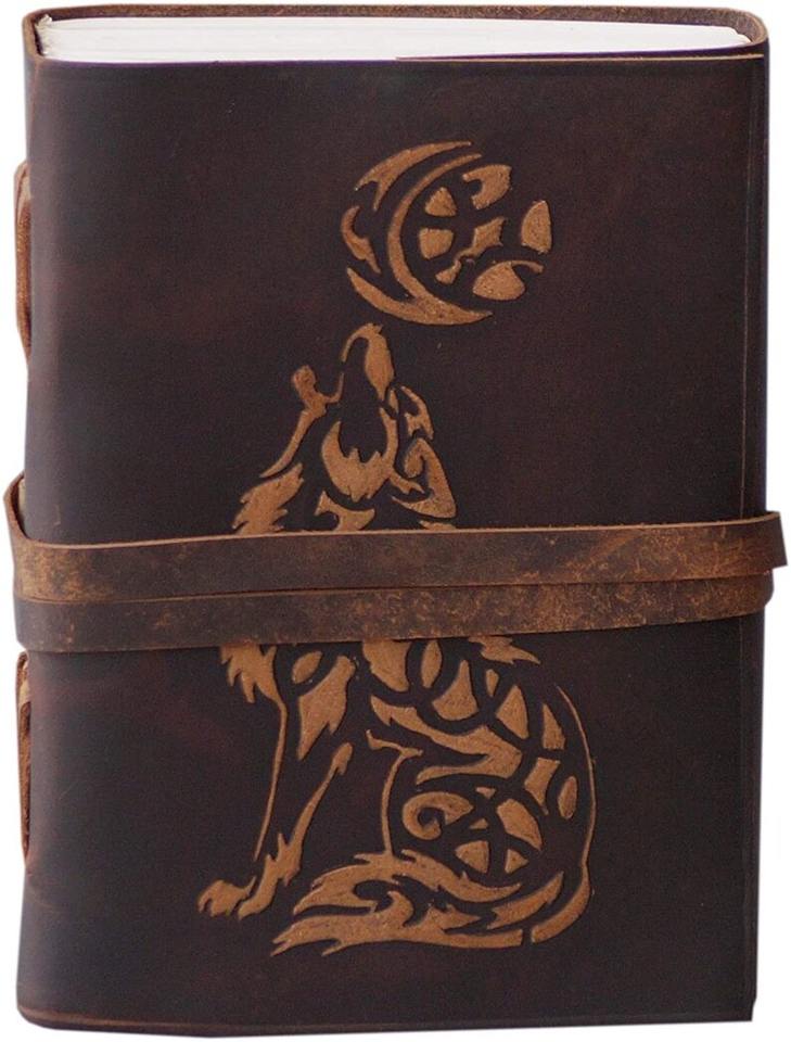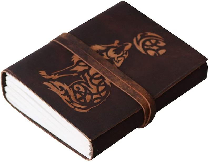 Lobo cuero en relieve 5x7 pulgadas espiral estilo diario personalizable Logo organizador para hombres mujeres uso escolar Cuadernos de regalo