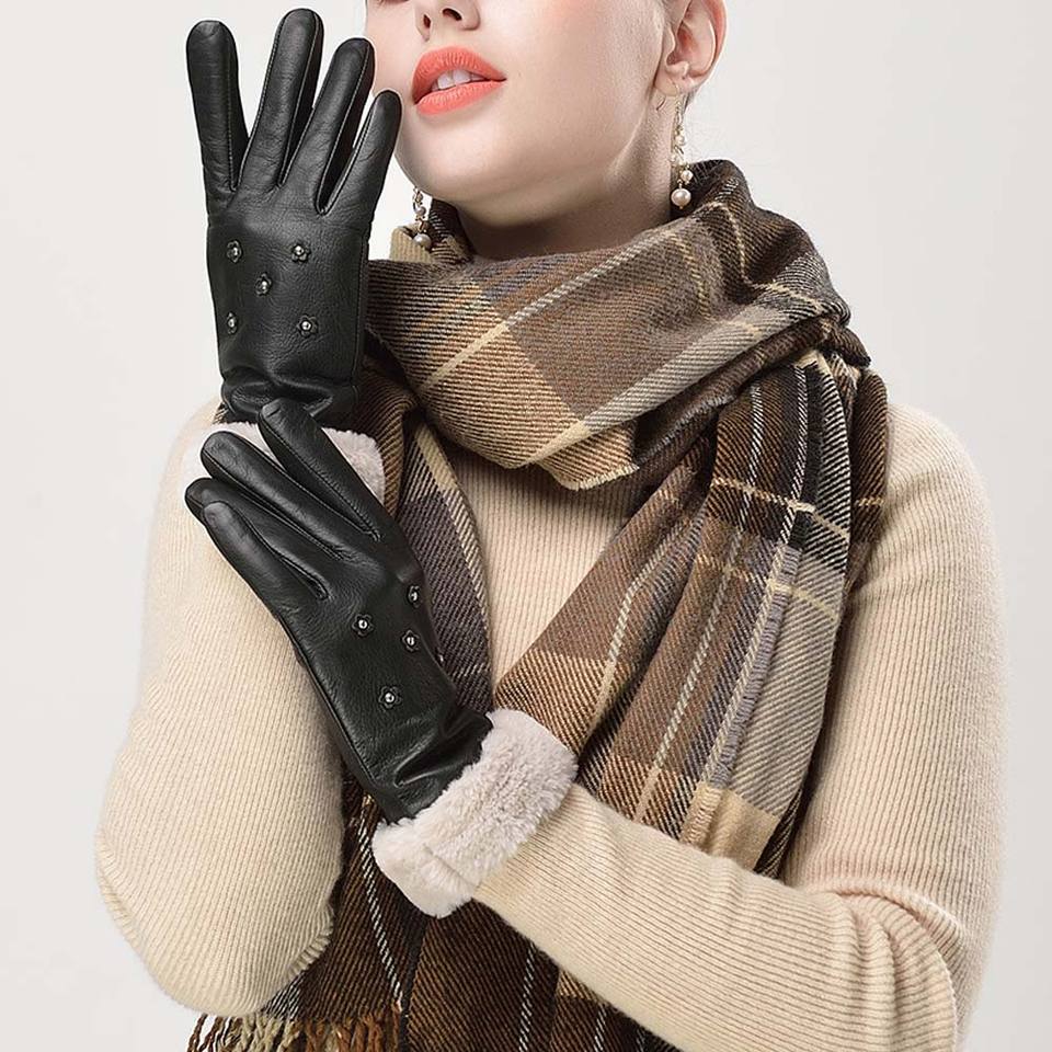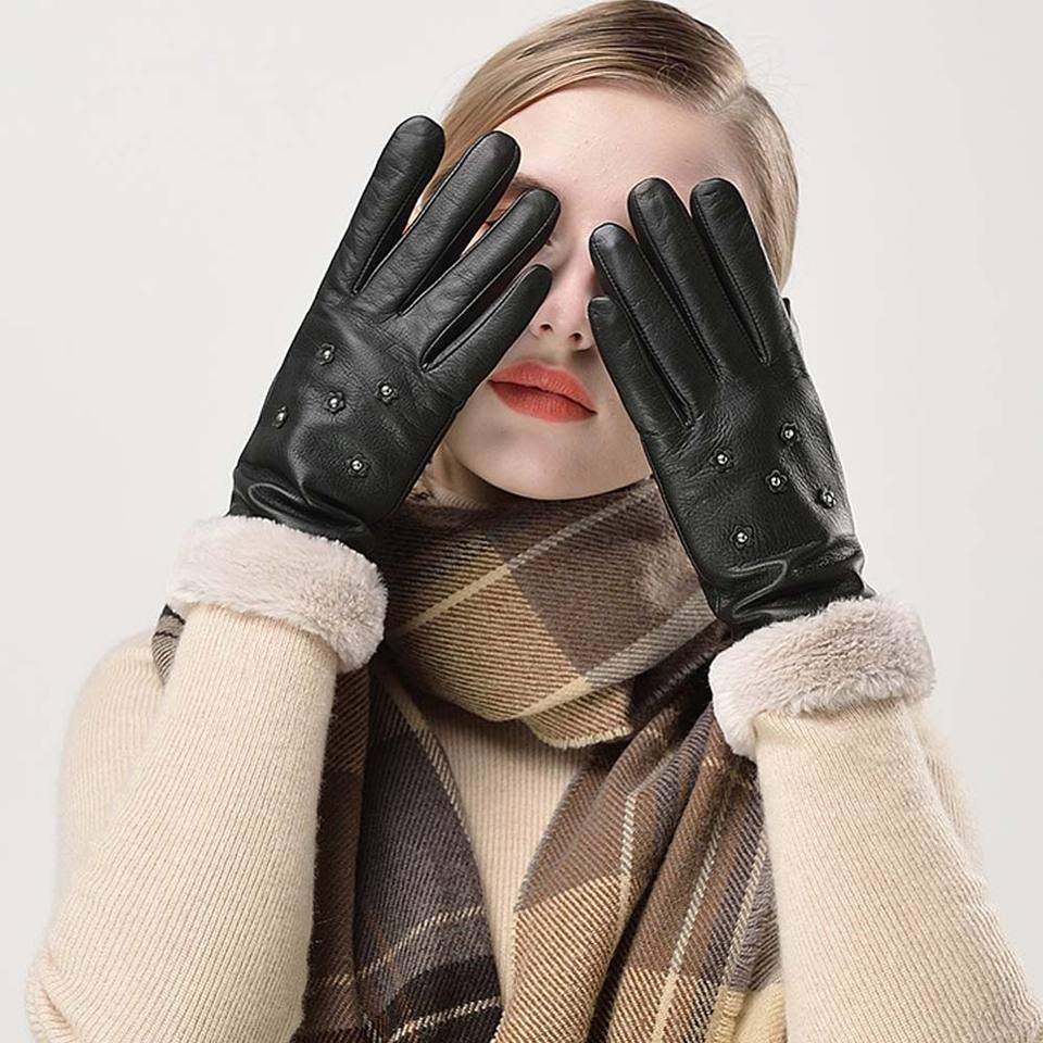 Wolson Industry, guantes de piel de oveja auténtica 100% para mujer, guantes con pantalla táctil de dedo completo para conducción al aire libre, lisos