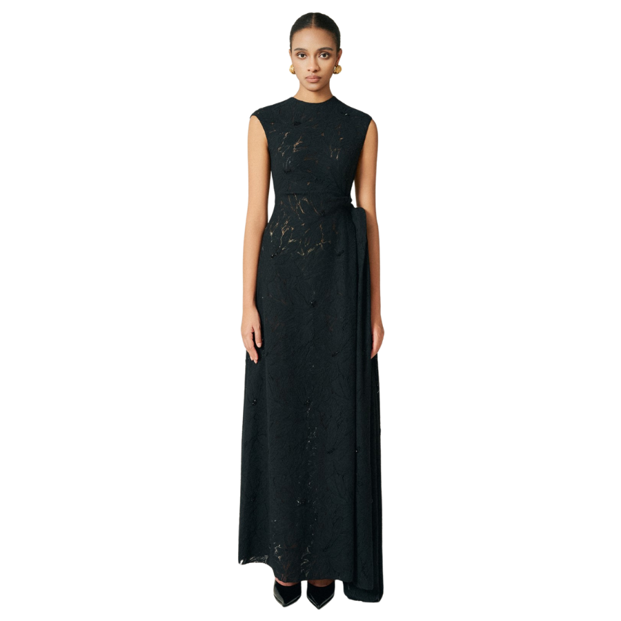 Vestidos de mujer elegante calidad Nella Emb encaje drapeado Midi vestido cuello redondo ropa mujer algodón flor encaje occidental ropa mujer