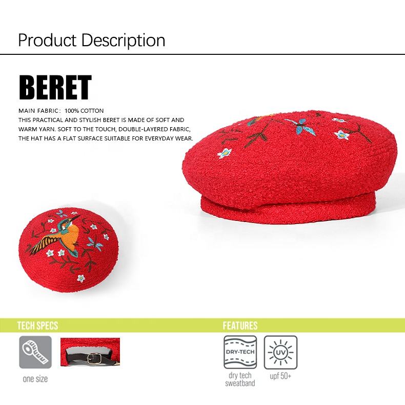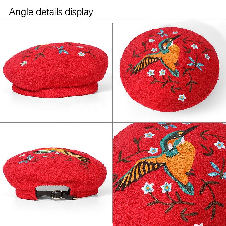 Mujer Retro británico personalizado bordado boina algodón lana cálido colorido fieltro boinas francesas