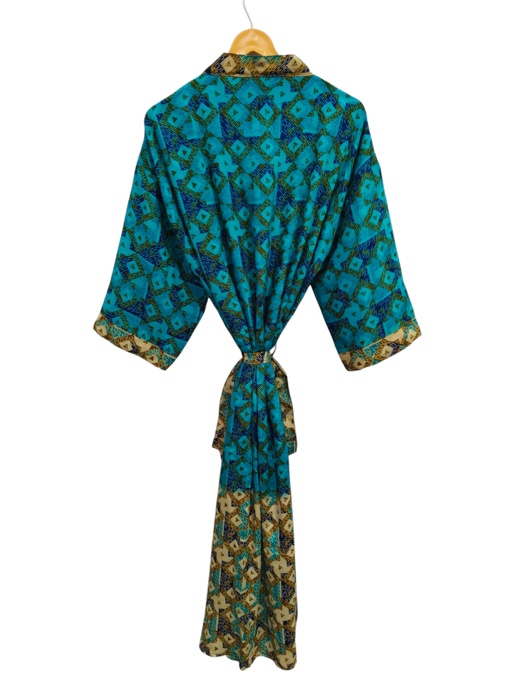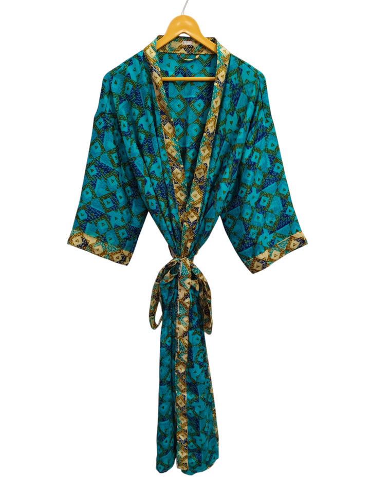 Ropa de mujer, ropa de playa de tamaño libre, bata larga, ropa de noche, bata de retazos, traje de baño, Kimono de seda Sari de verano para mujer