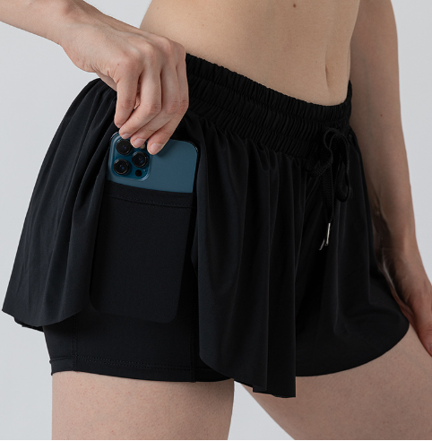 Shorts Deportivos 2 en 1 para Mujer, Cintura Alta, para Gimnasio, Fitness, Entrenamiento, con Bolsillo Interior para Teléfono y Logotipo Personalizado