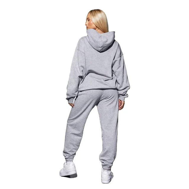 Conjunto de 2 piezas de chándal para mujer, chándal liso ajustado, chándal de lana de algodón 100%, jersey con estampado personalizado, chándal deportivo para mujer