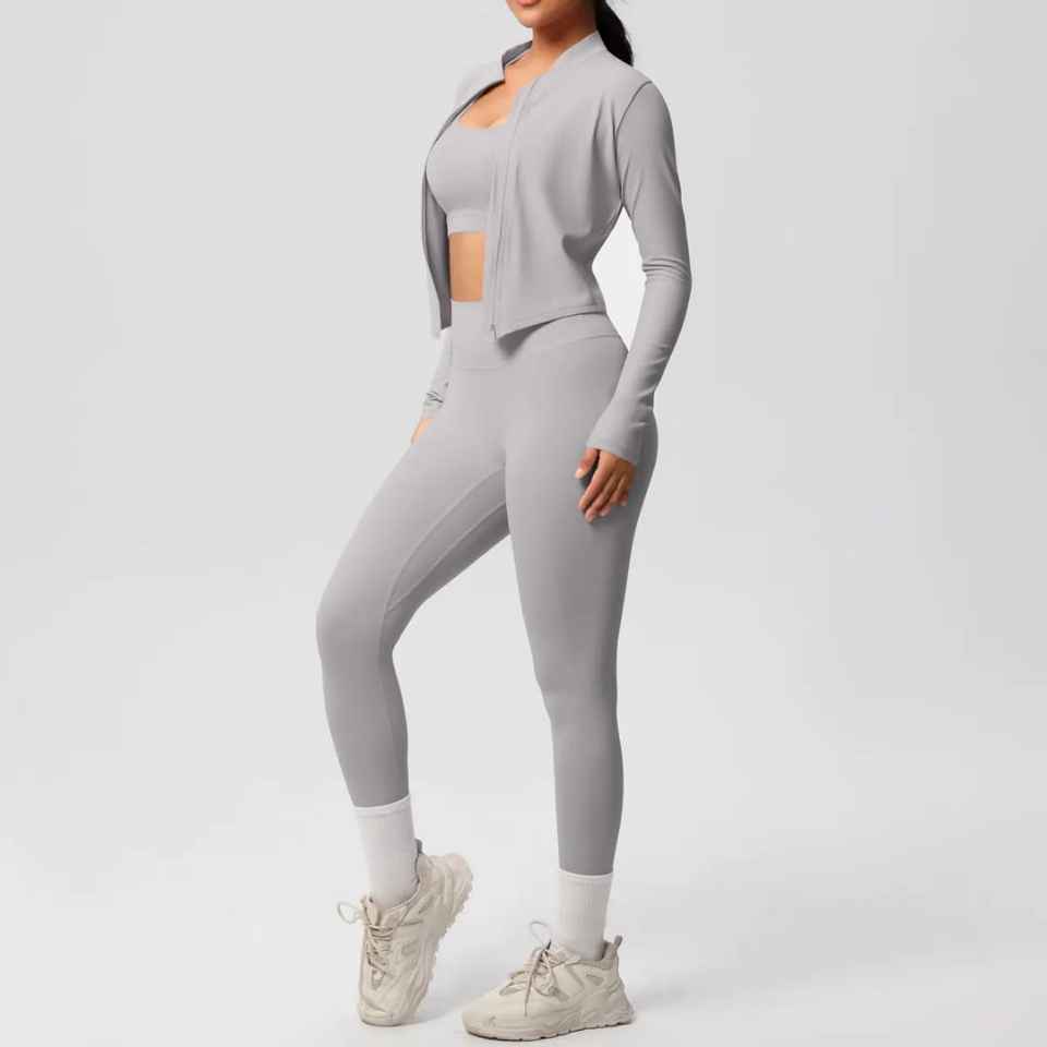 Conjunto Deportivo de 3 Piezas para Mujer, Ropa de Yoga de Cintura Alta, Atuendo para Gimnasio, Secado Rápido, Transpirable, Spandex, Nailon, Ropa de Fitness