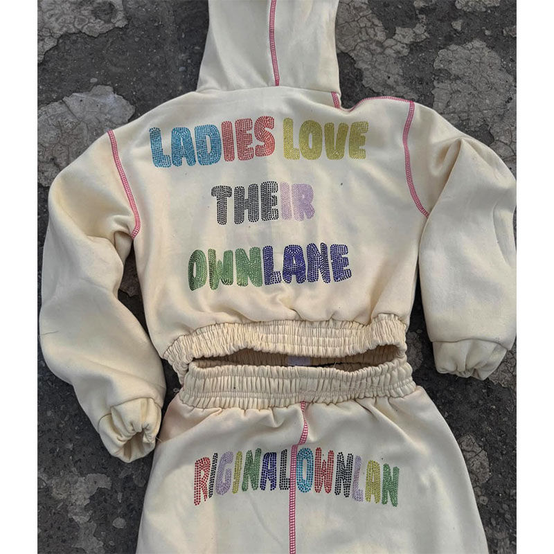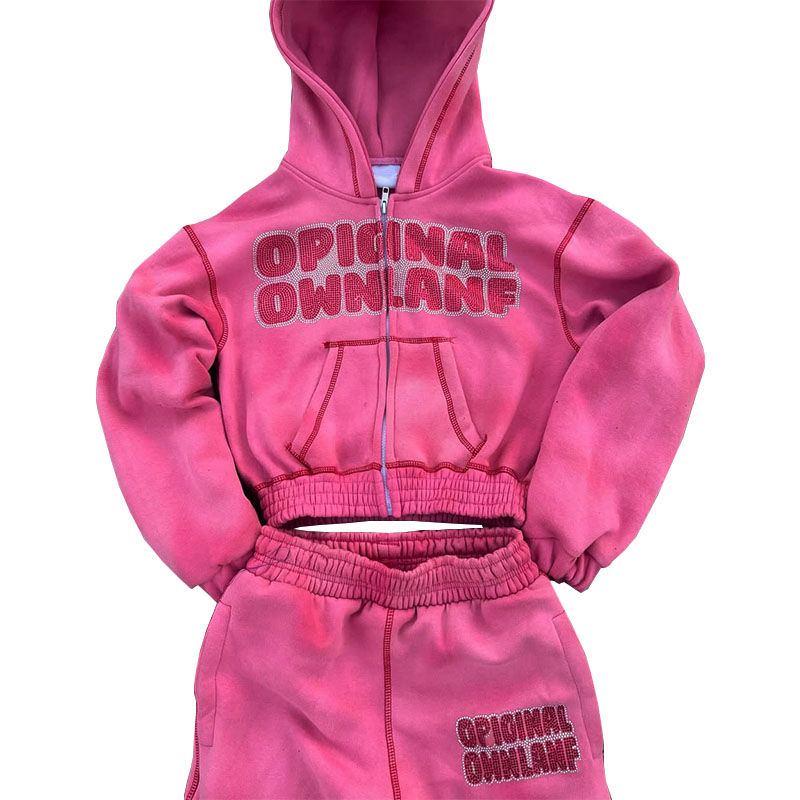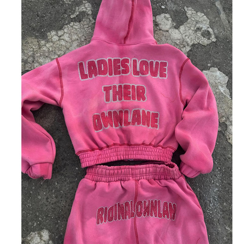 Conjunto de sudadera con capucha y cremallera con pedrería de 450 GSM para mujer | Chándal Personalizado de Diseñador | Sudadera con capucha para hombre con logotipo personalizado OEM