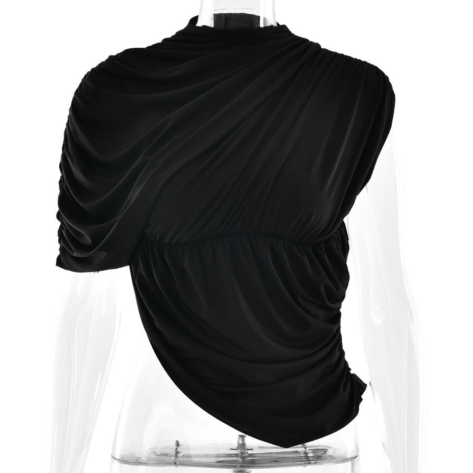Camiseta sin mangas asimétrica para mujer, de poliéster, ajustada, de color liso, con fruncido