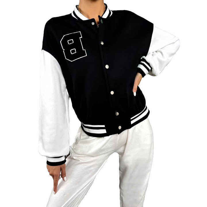 Chaqueta de béisbol para mujer, chaqueta universitaria para mujer con manga larga, chaqueta con letras bordadas de lana y poliéster de primera calidad para mujer