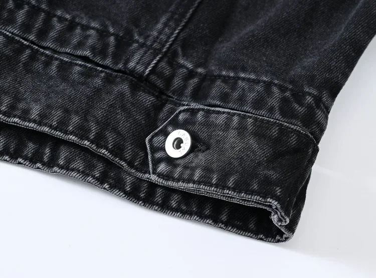 Palabras clave:Chaqueta de mezclilla corta negra de manga larga para mujer