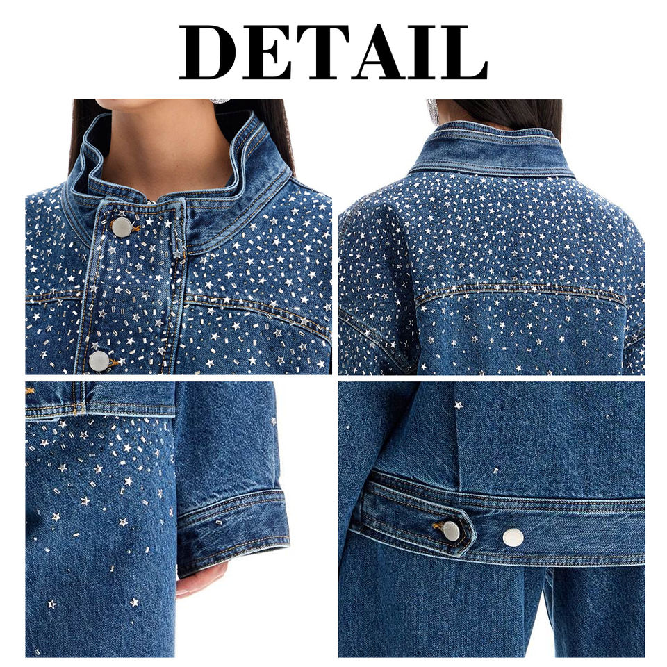 Chaqueta Vaquera Azul para Mujer con Múltiples Detalles de Cremallera, Chaqueta Corta Estilo Motociclista, Ropa Exterior de Moda, Chaqueta de Manga Larga para Mujer