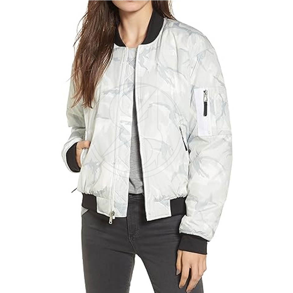 Chaqueta Bomber de talla grande para mujer, chaqueta hecha de poliéster de manga larga para mujer, a la venta, diseño personalizado, tamaño y tela