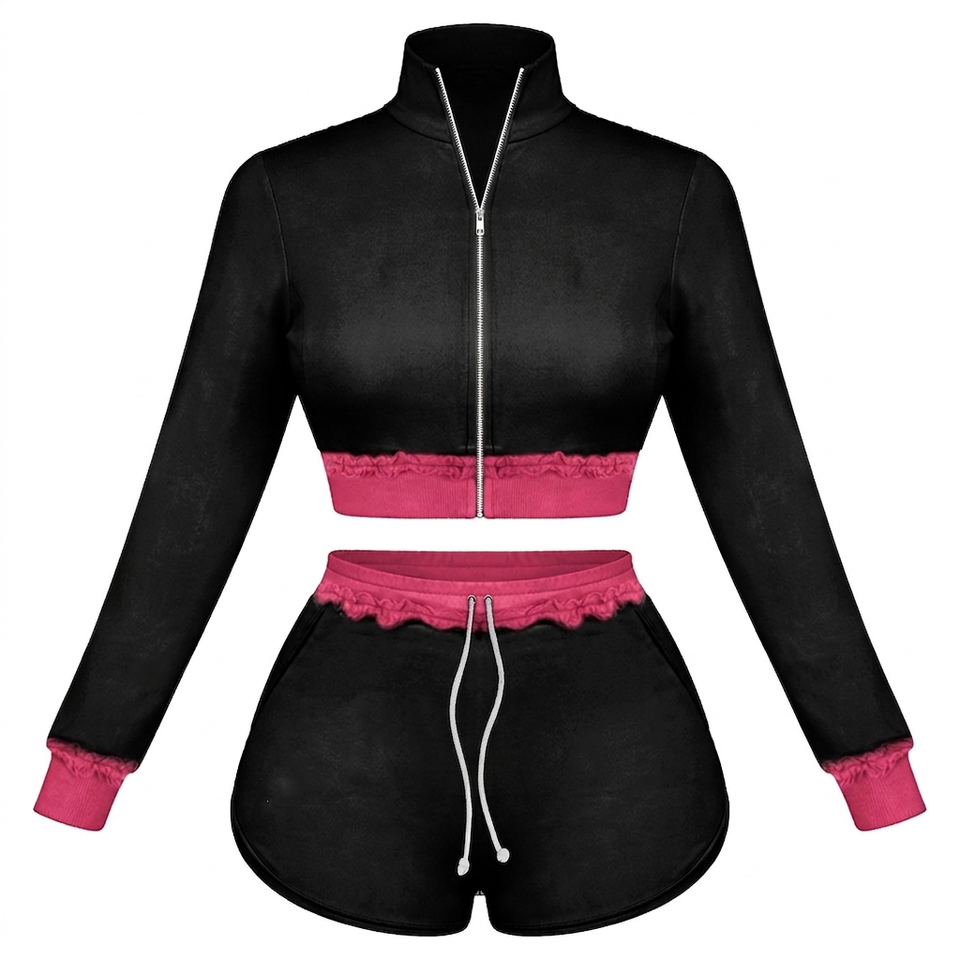 Conjunto de Shorts para Mujer, Poliéster y Spandex Premium de 220 g/m², Diseño de Dos Tonos, Top Corto con Cierre, Shorts de Cintura Alta, Logotipo Personalizado