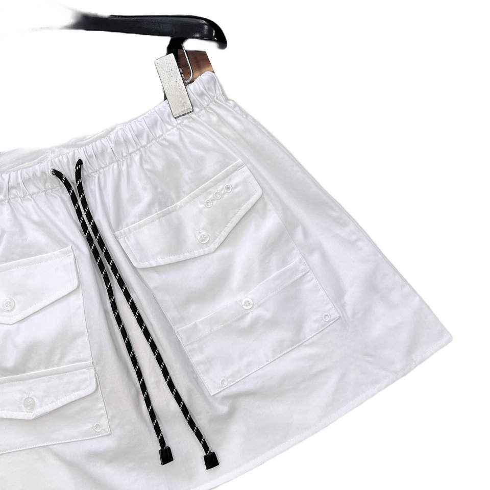 Minifalda cargo para mujer, cintura elástica con cordón, bolsillos, ropa informal de calle, Skort mius