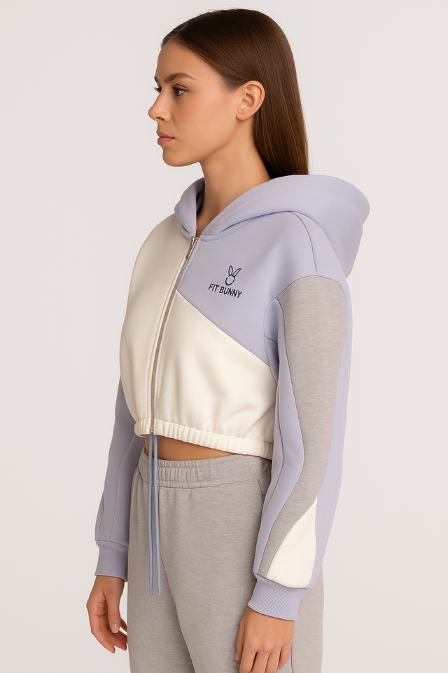 Sudadera con capucha corta con cremallera y bloque de Color para mujer, ropa de calle informal de tela de lana suave, ropa de abrigo ligera
