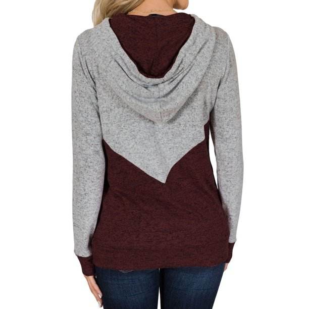Top con capucha de manga larga para mujer, Top con cordón de Color