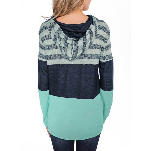 Sudadera con capucha de empalme de bloque de Color para mujer, jersey de manga larga holgado informal, Tops con capucha