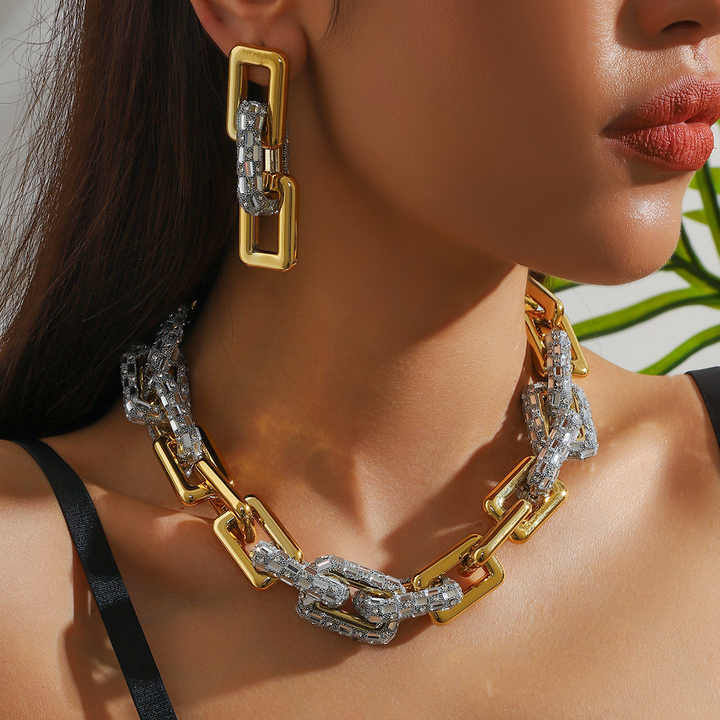 Conjunto de bisutería para mujer, declaración gruesa de Hip Hop, aleación chapada en oro de 18 quilates, pendientes de eslabones cubanos, Gargantilla, conjuntos de collar
