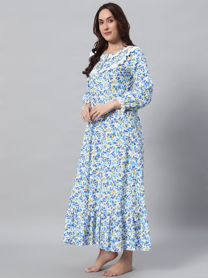 Camisón Victoriano Elegante de Algodón para Mujer con Estampado Floral, Temporada Primavera/Otoño/Verano