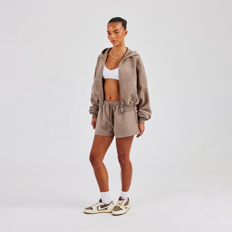 Mujeres patrón personalizado 3D sublimación todo estampado pulóver sudaderas con capucha gimnasio pantalones cortos conjunto hombro caído ajuste suelto talla S a 2XL