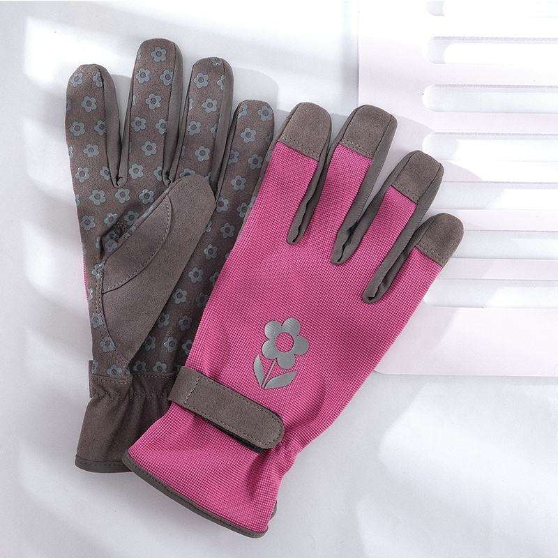 Guantes de trabajo de jardinería de Palma antideslizantes de gel de silicona personalizados para mujer Guantes protectores de cuero sintético