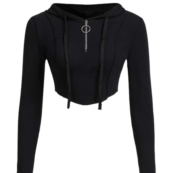 Top corto personalizado para mujer Sudadera con capucha de media cremallera con cordón en el hombro con capucha disponible en todos los colores para la temporada de invierno