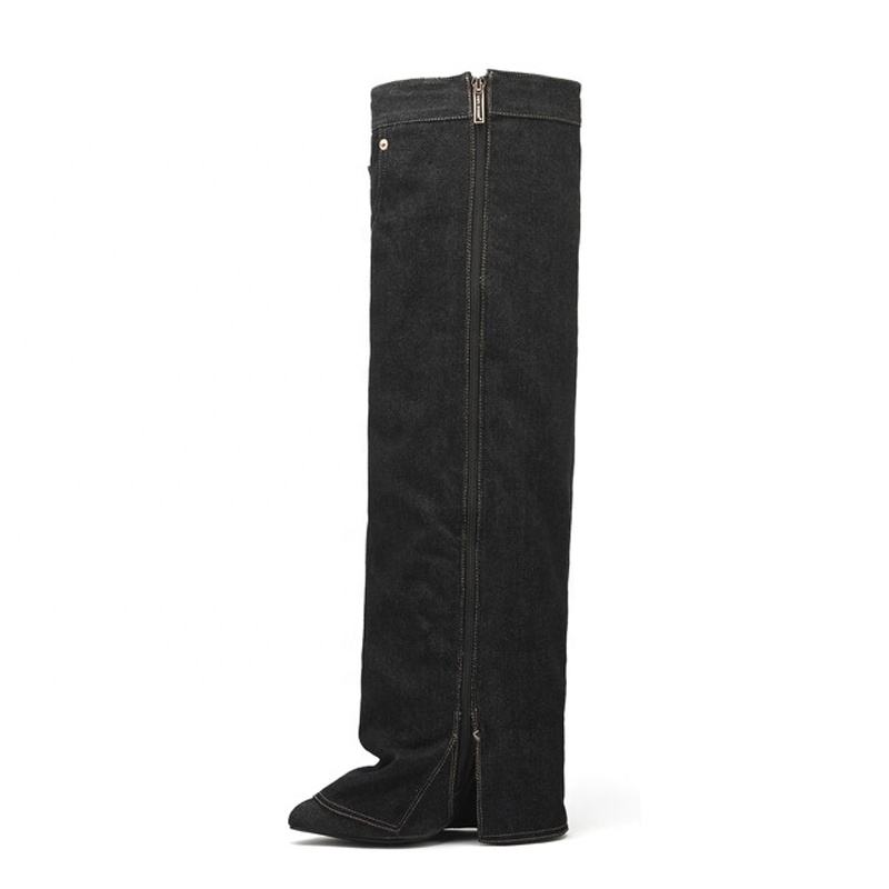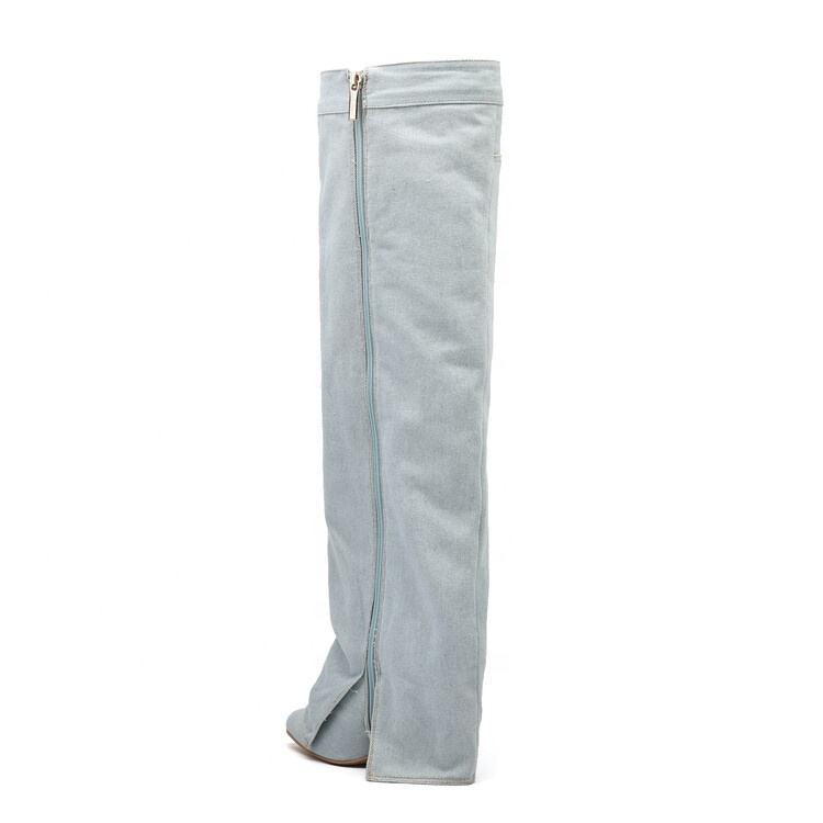 Botas Altas de Mezclilla para Mujer con Diseño Personalizado, Botines Largos de Tacón Grueso con Punta Plegada y Estilo Vaquero