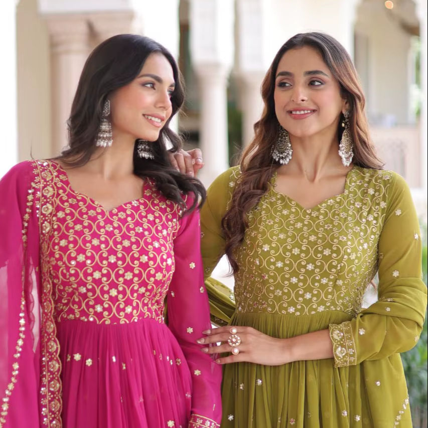 Faux Georgette con lentejuelas ricas y trabajo bordado ZariMaterial