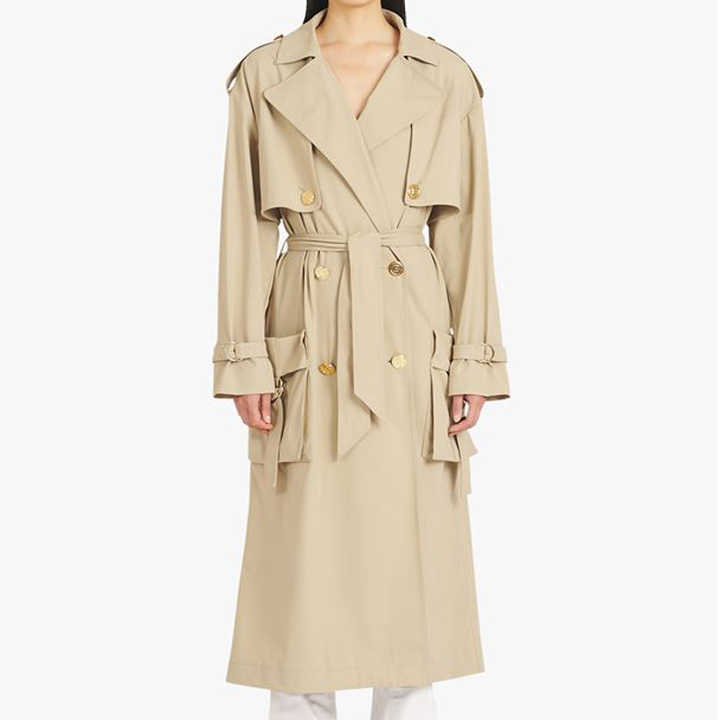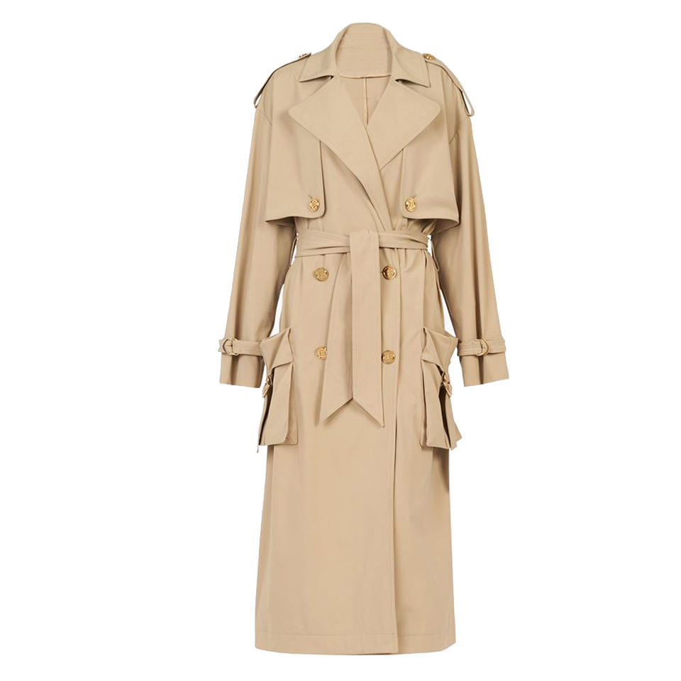 Gabardina de algodón con doble botonadura para mujer, gabardina de doble botonadura, resistente al agua, con botón de bocina