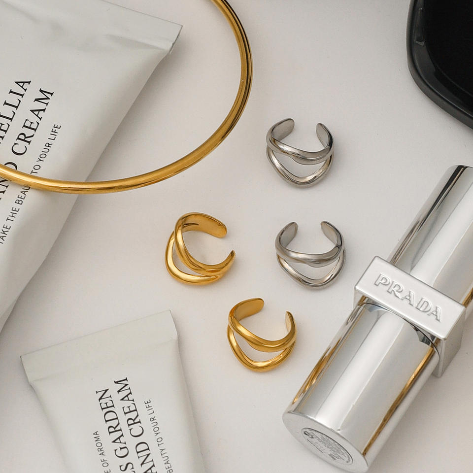 Mujer Oreja Hueso Clips Cuff Pendientes 18K Chapado en oro Hueco Raya en forma de acero inoxidable Ear Cuff