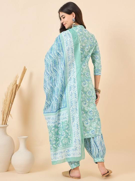 Mujeres motivos étnicos impresos Kurta de algodón puro regular con pantalones Harem y con Dupatta para mujeres ropa de mujer personalizada