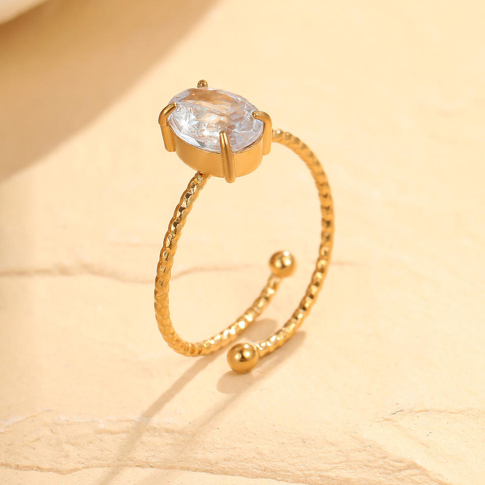 Joyería de moda para mujer, anillo de acero inoxidable de circón ovalado con garra Simple, anillo abierto Ajustable de lujo