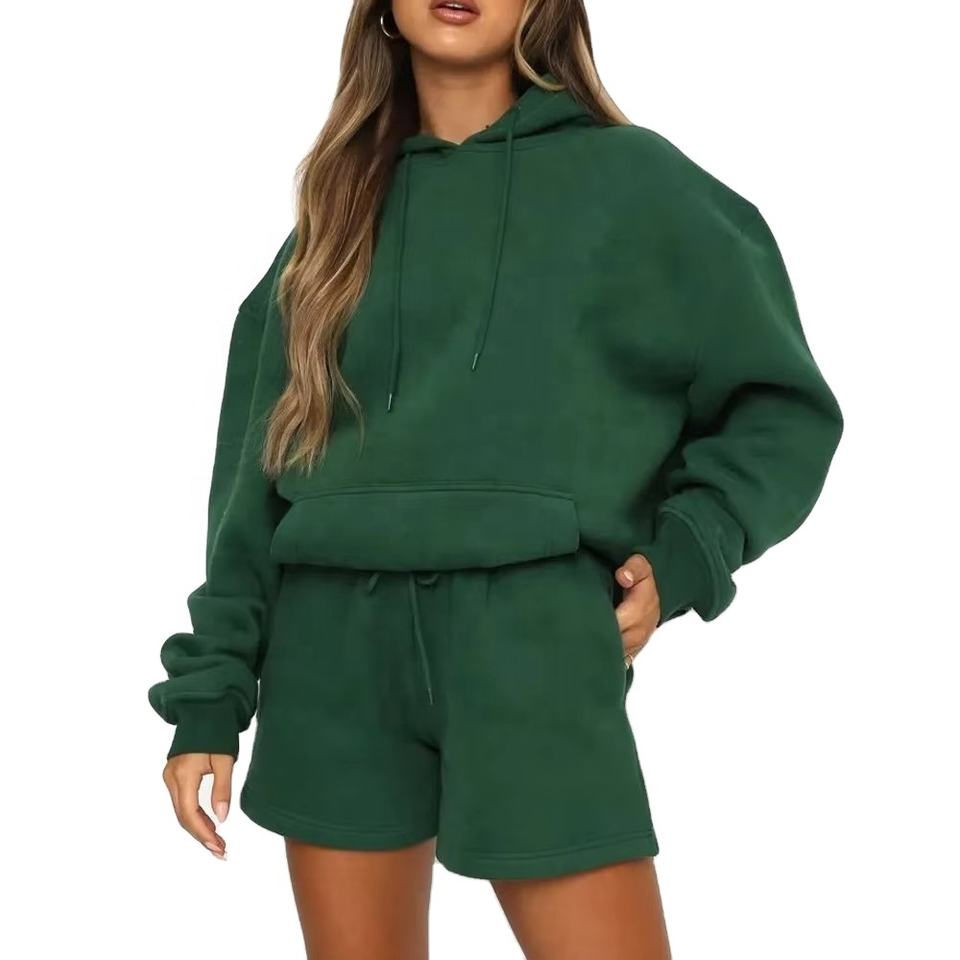 Chándal de lana para mujer, conjunto de 2 piezas con hombros caídos y patrón sólido, pantalones para correr, sudadera con pantalones de chándal, sudaderas con capucha en blanco de gran tamaño