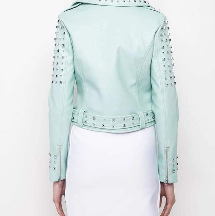 Chaqueta de Cuero 100% Genuino con Pedrería para Mujer, Diseño de Alta Calidad, Chaqueta de Cuero Puro de Primera Calidad para Mujer