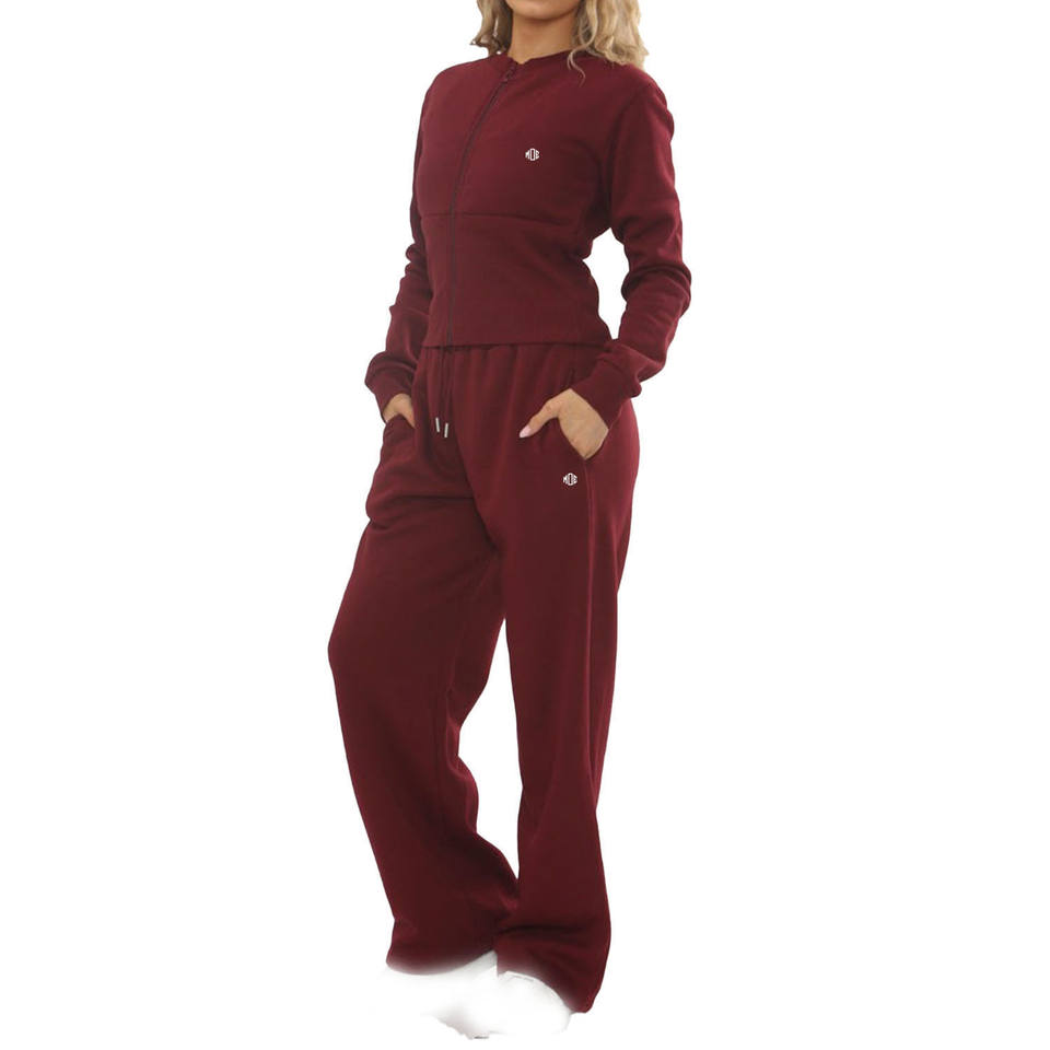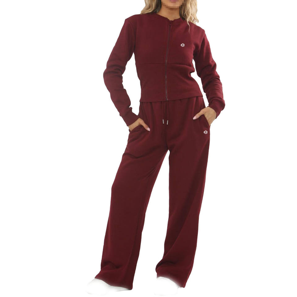 Conjunto Deportivo de Mujer con Cremallera Completa, Top de Punto Suave de Manga Larga y Pantalones Anchos, Producción de Marca Privada al por Mayor