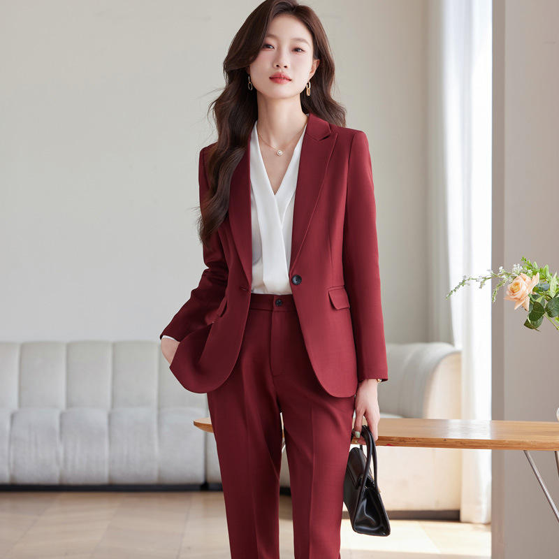 Women Grey Suit Set Polyester Full Sleeve Anti-Wrinkle Office Lady Spring Formal Wear