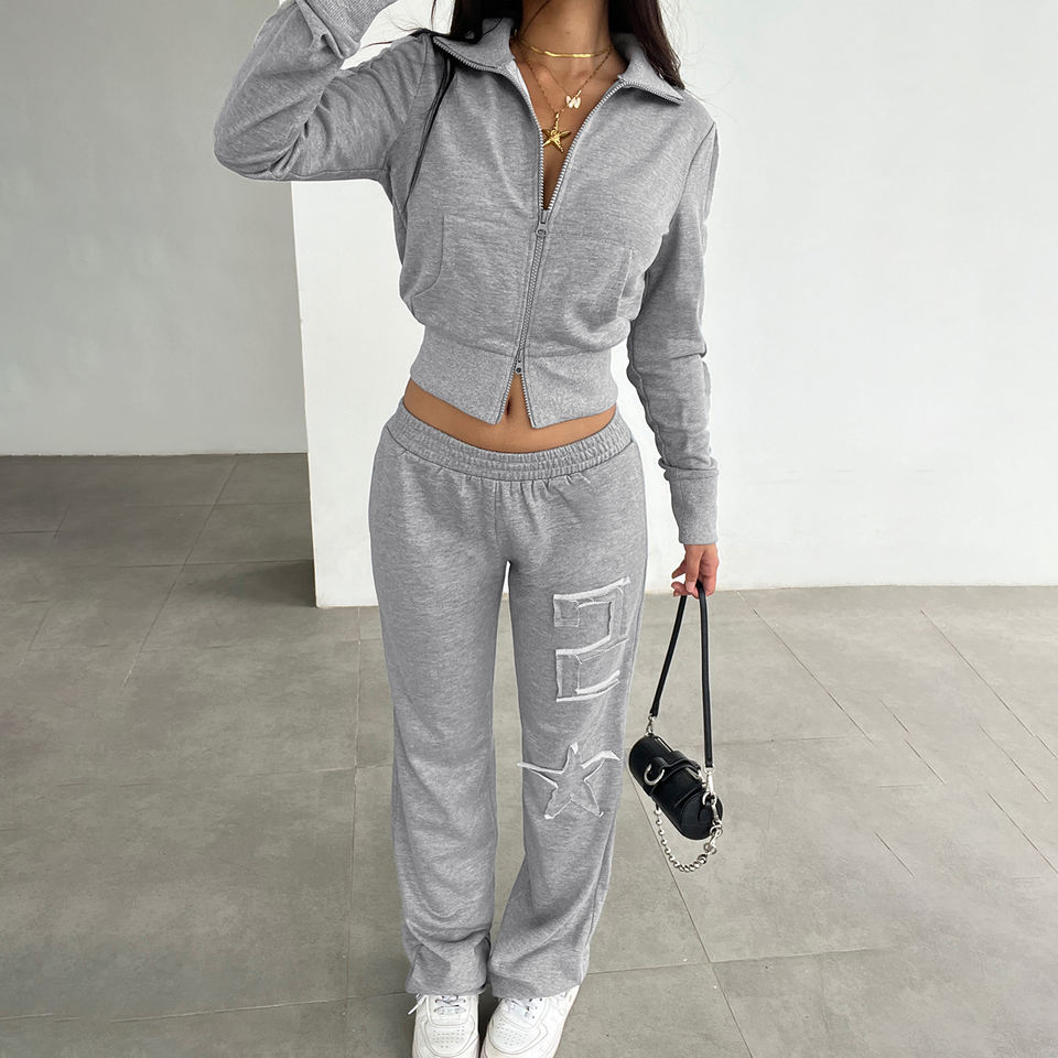 Conjunto Deportivo Gris para Mujer con Sudadera con Cremallera y Pantalones Jogger con Estampado de Logotipo, Cómodo y Elegante