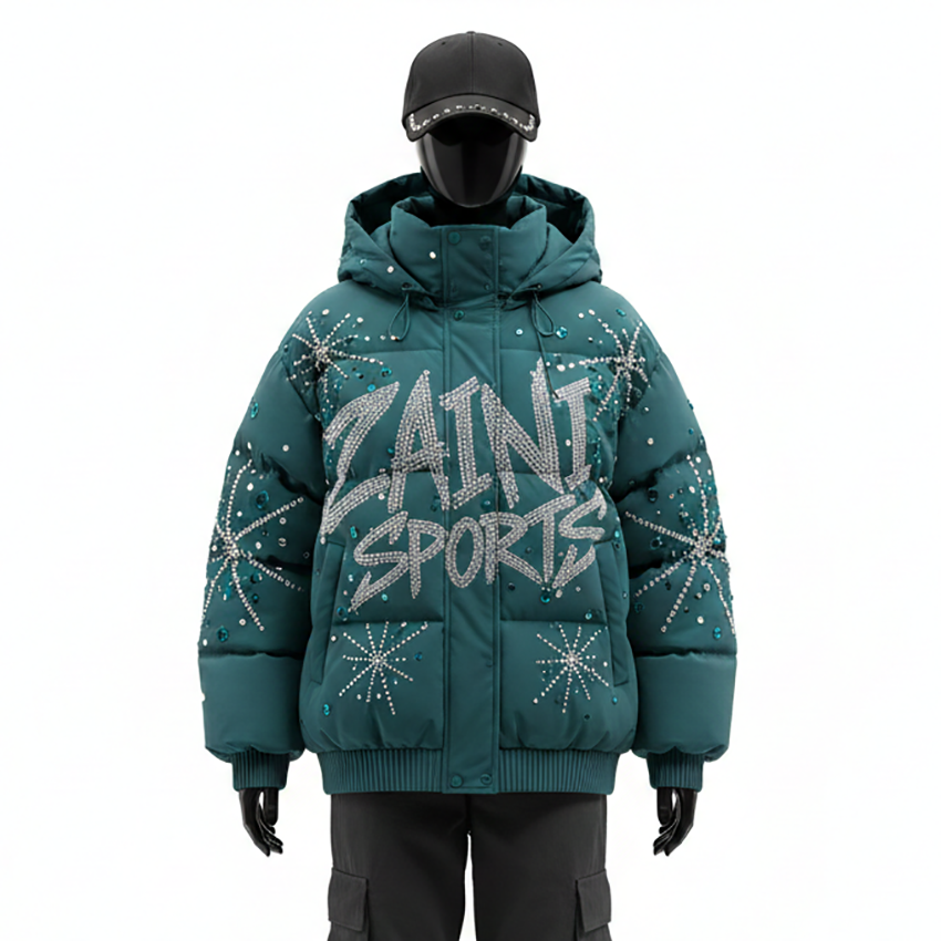 Chaqueta Acolchada de Poliéster de Alta Calidad para Mujer, Paneles Acolchados Suaves, Estilo Cálido de Invierno, Chaqueta Acolchada con Logotipo de Diamantes de Imitación para Mujer