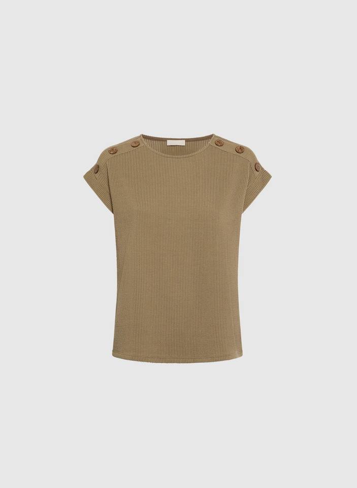 Product name:Decorative Buttons Ribbed Knit T-Shirt