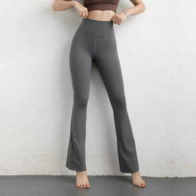 Pantalones deportivos de cintura alta para mujer, pantalones de Fitness para gimnasio, corte de bota de pierna ancha con bolsillo, mallas acampanadas para Yoga
