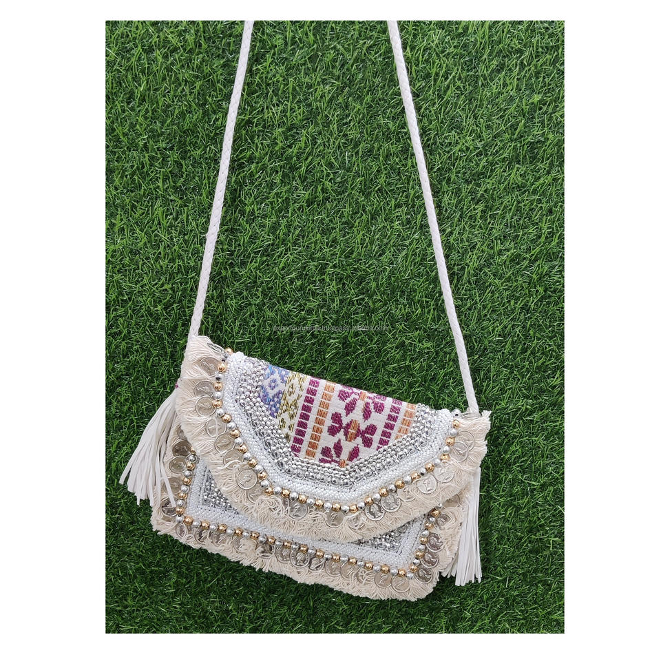 Bolso de mano de lujo personalizado de utilidad hecho a mano de La India para mujer, bolso de mensajero bohemio para mujer, bolsos de mano de noche para mujer