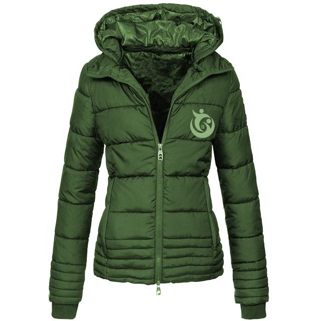 Chaqueta de invierno para mujer, Abrigo acolchado de cuello alto personalizado, chaqueta acolchada gruesa con cremallera de manga larga para mujer, chaqueta acolchada para niñas jóvenes de Navidad