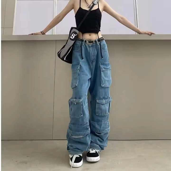 Pantalones vaqueros de Mujer Pantalones vaqueros elásticos lavados de cintura alta a la moda Pantalones vaqueros rasgados para mujer
